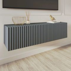 Благодаря своей компактности тумба под ТВ подвесная поможет сэкономить пространство, избежать ощущения загромождённости гостиной, спальни или детской комнаты, а рифлёный фасад будет акцентировать